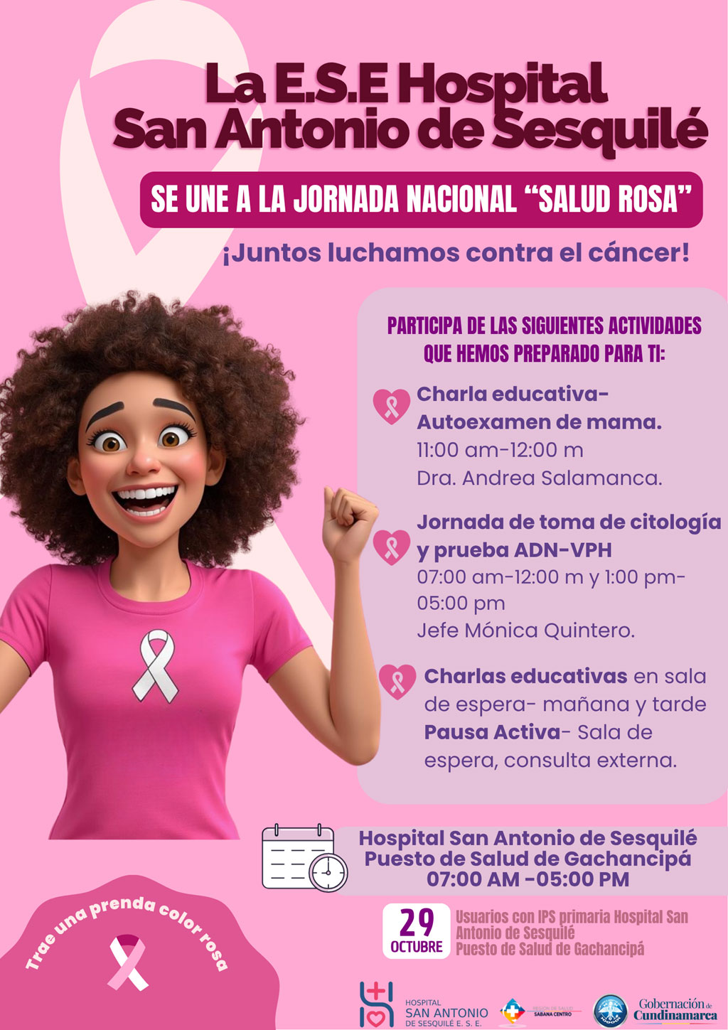 La E.S.E Hospital San Antonio de Sesquilé te invita a participar en esta jornada especial dedicada a TI, mujer valiente y luchadora.